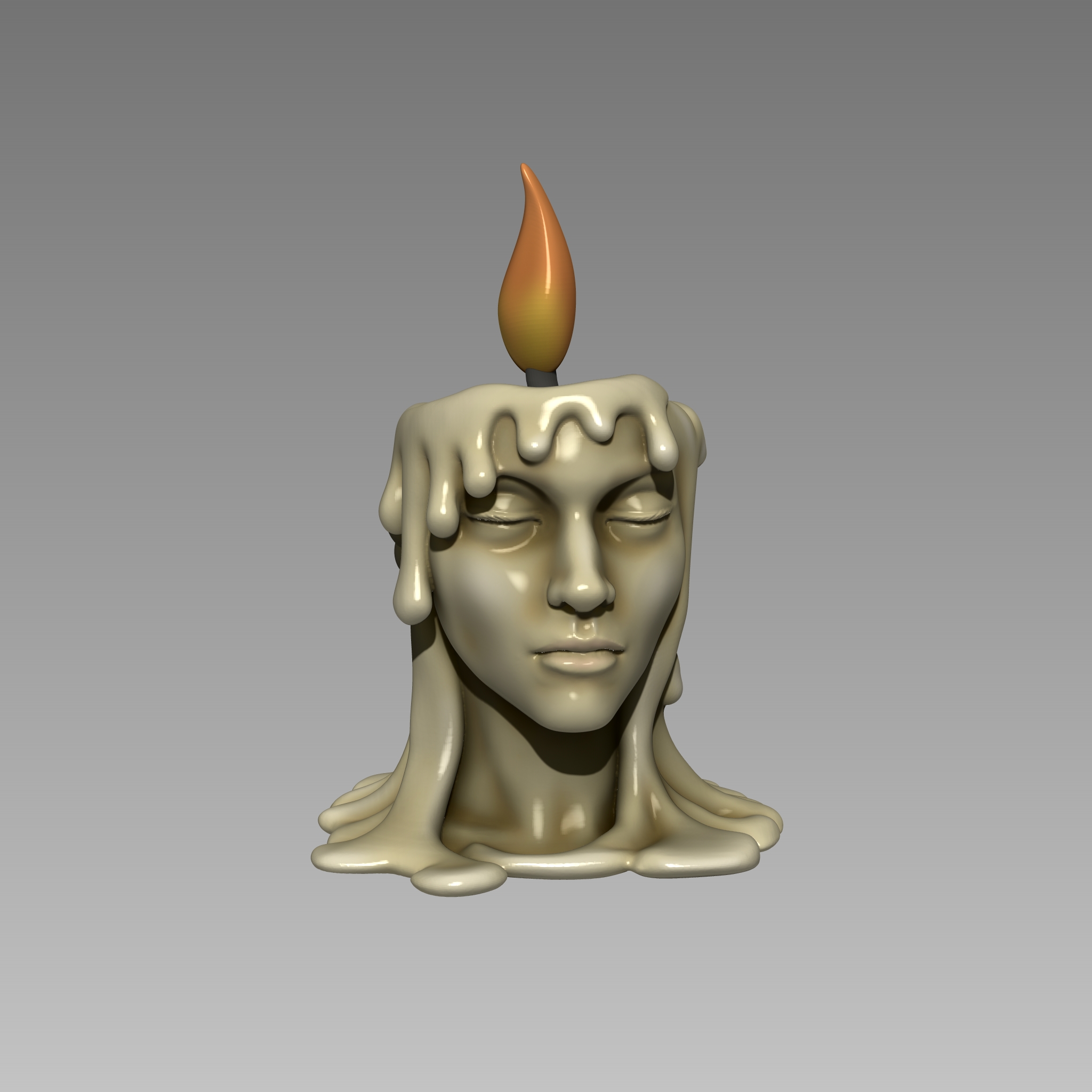 El diseño combina elegantemente la estética de una vela fundida con la serenidad de un rostro femenino, fusionando la belleza clásica con la expresión artística.